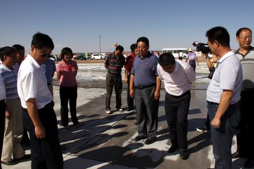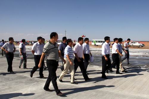 8月21日,由喬新山局長率領(lǐng)的民航西北管理局工作檢查組一行蒞臨金昌機場飛行區(qū)施工現(xiàn)場檢查指導工作。在飛行區(qū)停機坪建設工地,在了解到公司金昌機場項目部僅用了二十五個晝夜完成了總面積2.65萬平方米停機坪道面工程的情況后,對大家的辛勤勞動給予了充分肯定,并鼓勵廣大建設者繼續(xù)鼓足干勁、克服困難,發(fā)揚求真務實、艱苦奮斗的作風,確保工程按期完工。