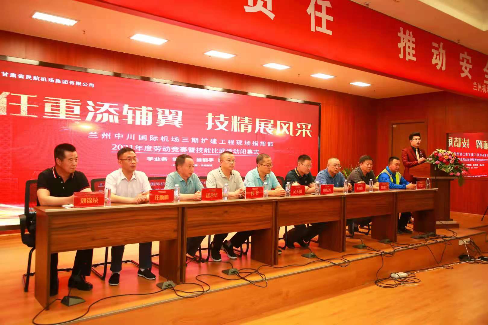 7月28日下午,蘭州中川國際機場三期擴建工程現場指揮部舉辦了2021年度“勞動競賽暨技能比武”活動頒獎典禮。蘭州中川國際機場三期擴建工程現場指揮部黨委副書記、常務副指揮長、黨委委員、總會計師,以及我司副總經理等領導出席并參加了頒獎典禮。大會彰顯了本次技能大比武的進取精神,通報了比武結果,與會領導為獲獎人員及獲獎單位頒發獎牌及獎品。